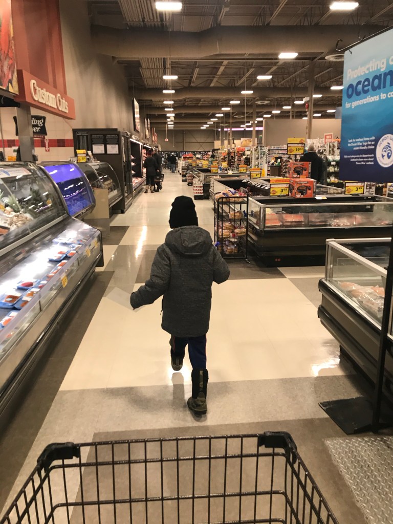 So we would go to the grocery store once a week and have a list of three items. Tyson would have to find the food, pick it up and put it in the cart.