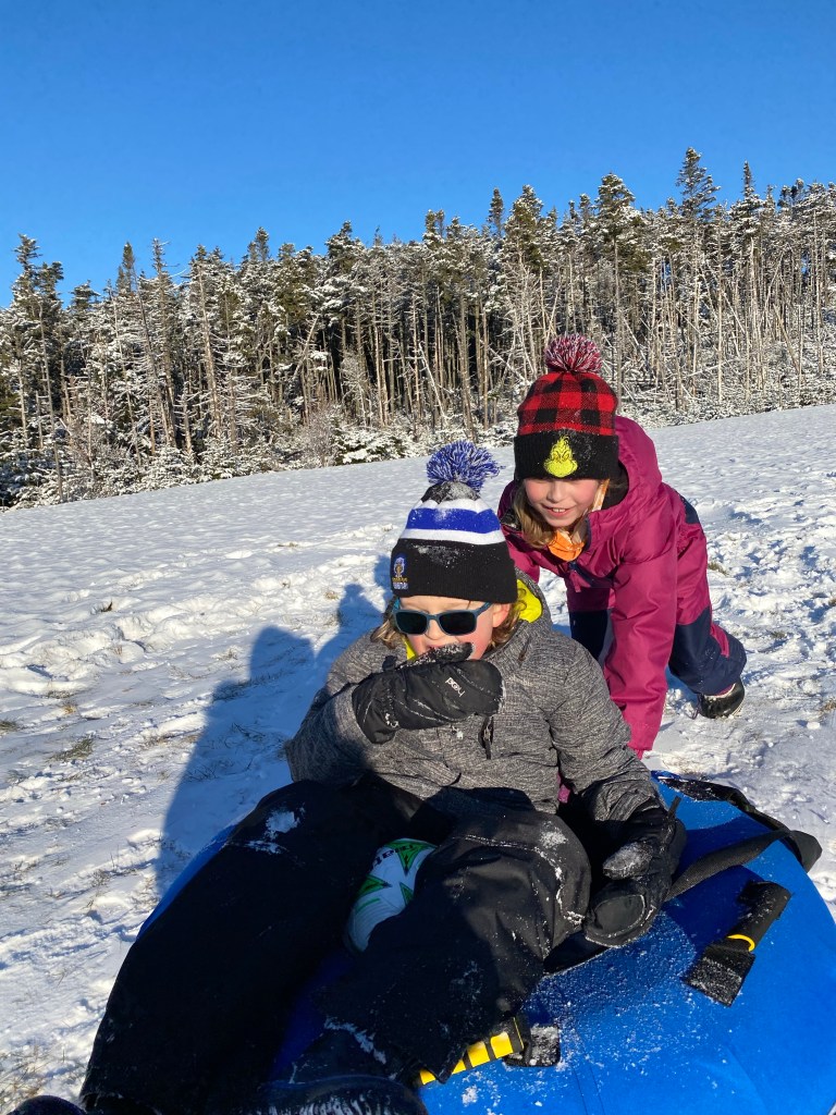 A few minutes later, when Tyson was ascending back up the hill he decided to park his little butt right in the middle of the kid’s snow ramp.